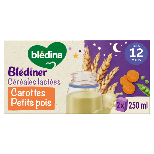 Nouvelle recette : Blédîner Briques Céréales Lactées Carottes Petits pois, c’est un savoureux plat complet du soir pour bébé avec un apport lacté adapté, des céréales et des légumes au goût tout doux ! Et le tout dans un format pratique & prêt à l’usage !