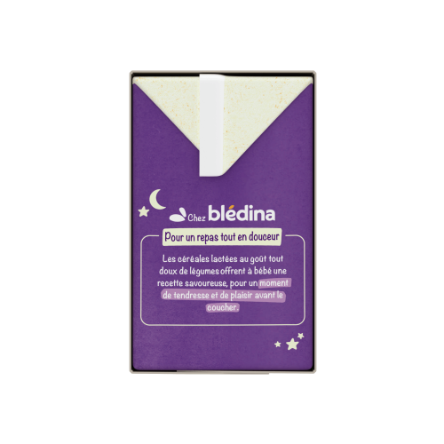 Blédîner Croissance Légumes variés, c’est un savoureux plat complet du soir pour bébé avec un apport lacté adapté2, des céréales et des légumes au goût tout doux ! Et le tout dans un format pratique & prêt à l’usage !