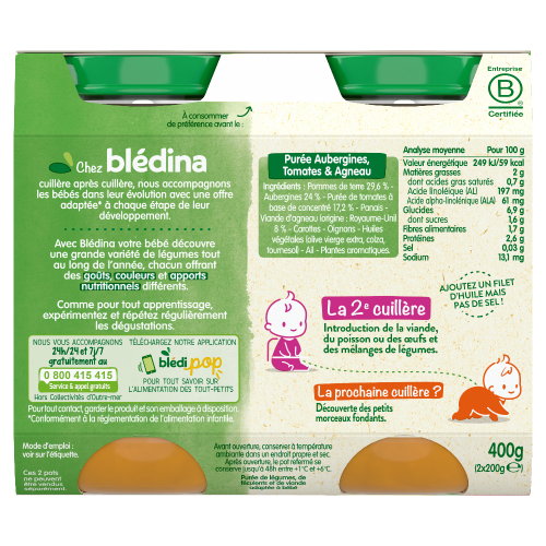 Découvrez nos Petits pots Blédina, de délicieuses recettes pour faire découvrir à bébé ses premiers légumes aux saveurs méditerranéennes et le bon goût de l'agneau et du poulet. A déguster dès 6 mois.