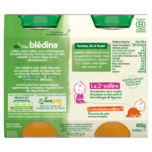 Découvrez nos Petits pots Blédina, de délicieuses recettes pour faire découvrir à bébé ses premiers légumes et le bon goût de la volaille. A déguster dès 6 mois.