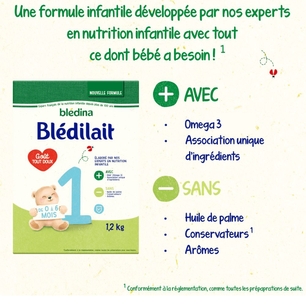 Découvrez Blédilait 1er âge qui accompagne votre bébé pas à pas, tout naturellement.